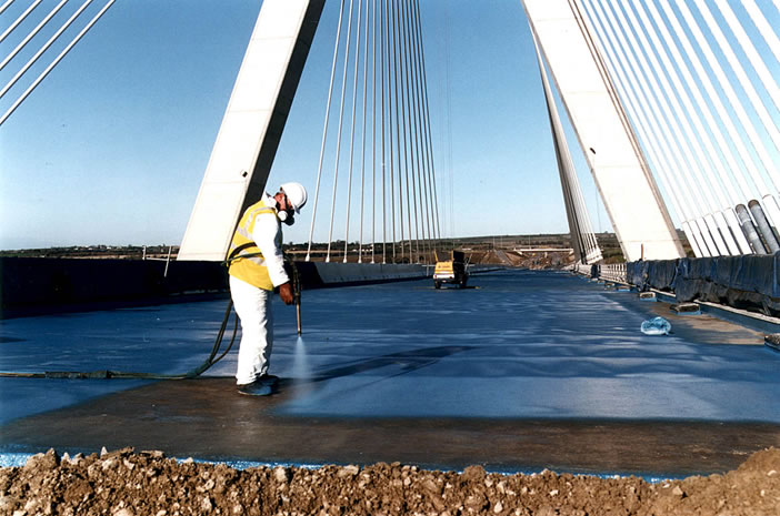 Las Poliureas se aplican con un maquina de alta tecnología que permite aplicar el producto con un equipo transportable, utilizando personal especializado, permitiendo la aplicación de hasta 1500 m2 diarios a dos milímetros de espesor o mas, con un secado de tres a diez segundos, pudiendo ser transitable en minutos, con una elongación de hasta un 500% permitiendo copiar extremas dilataciones y contracciones del terreno. Lo más importante, impermeable 100%. |